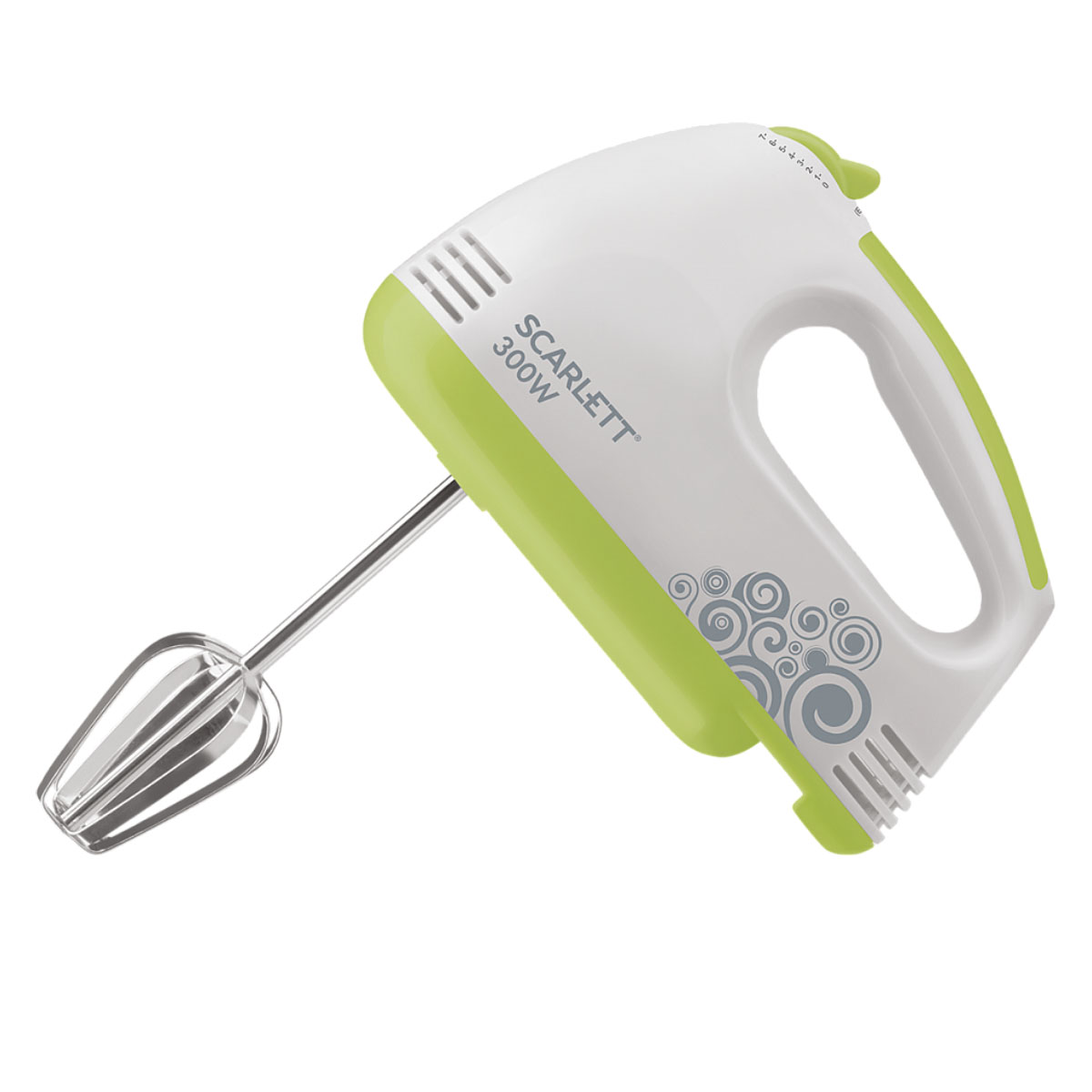 Миксер эл. Scarlett SC-HM40S05, мощность 300Вт, 7 режимов скорости, белый с зеленым