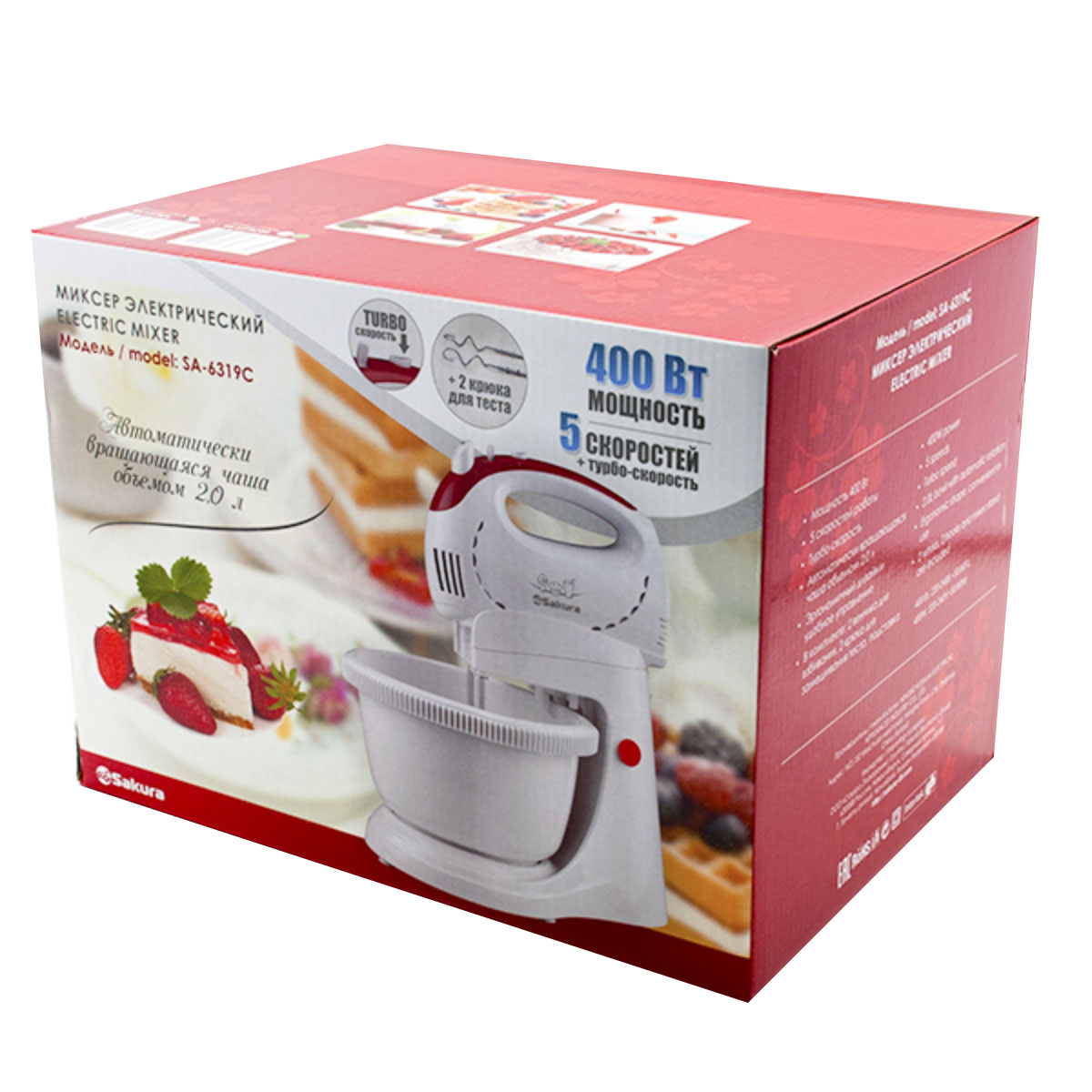 Миксер SA-6319CR 400Вт с чашей 2.0л