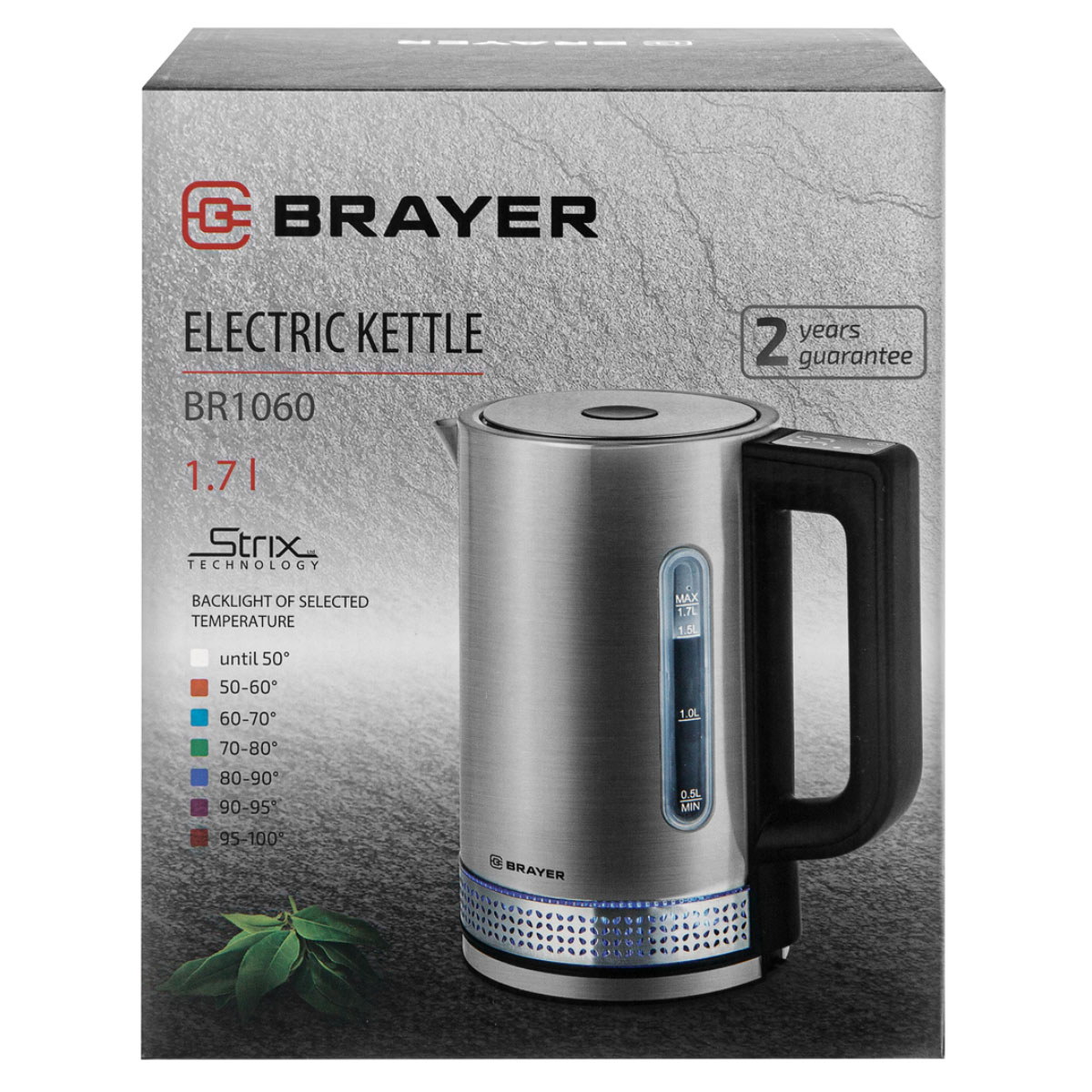 Эл.чайник BR1060 1,7 л 2220Вт нерж./покрытие пластик черн. BRAYER