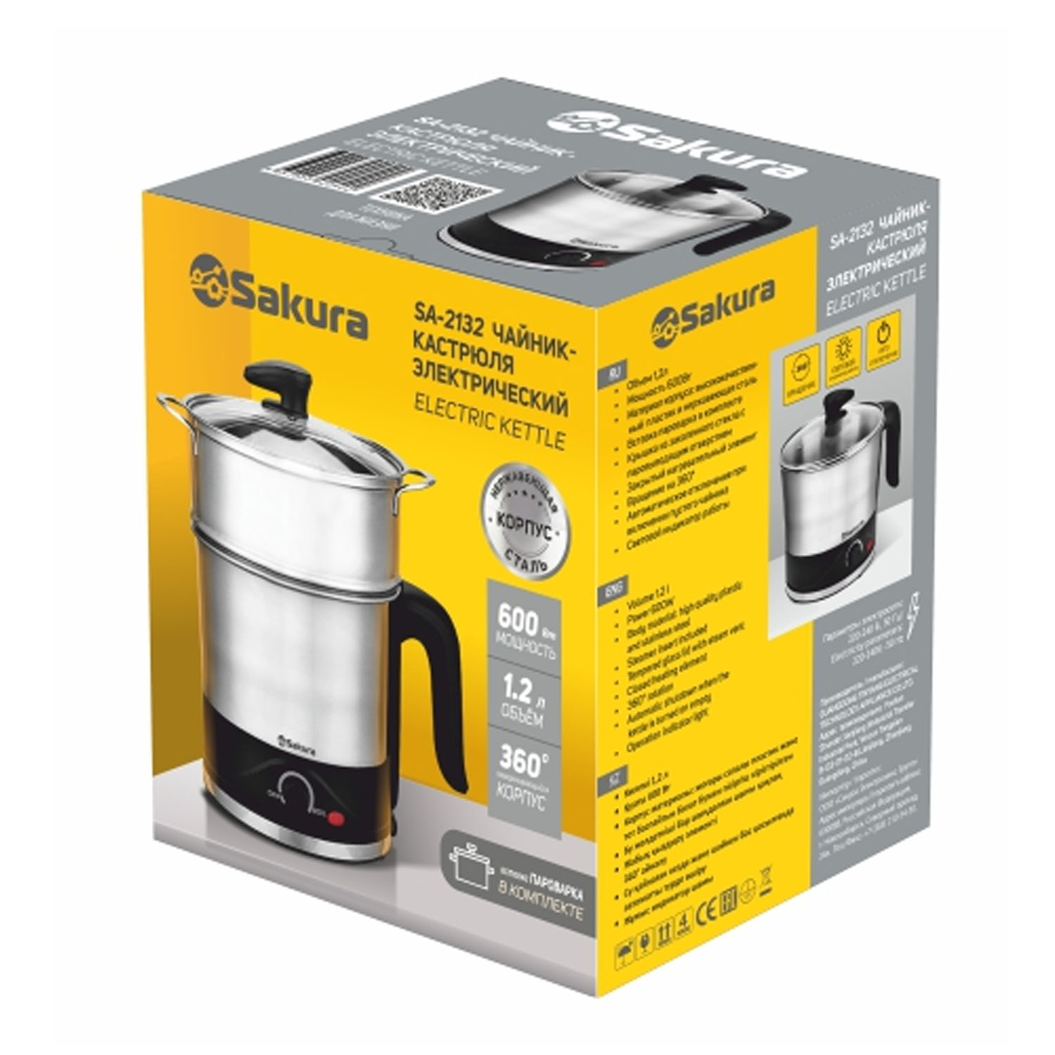 Кастрюля-чайник эл.+пароварка SA-2132 (1,5л) нерж., 1500Вт