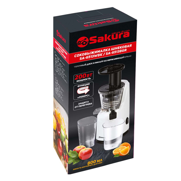 Соковыжималка эл. SAKURA SA-6513WBK, 200Вт,шнековая