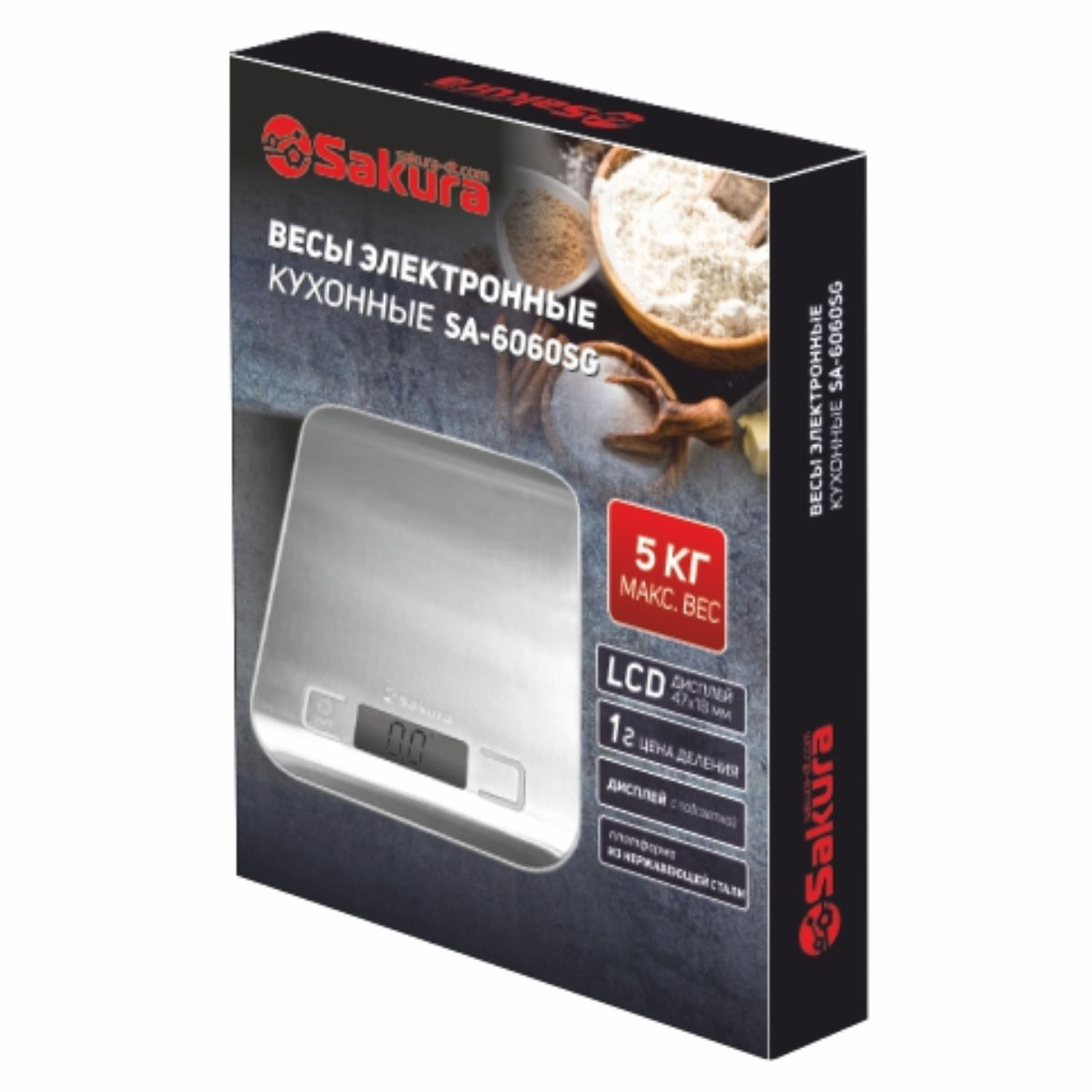 Весы кухонные SA-6060SG 5кг элек нерж/серый