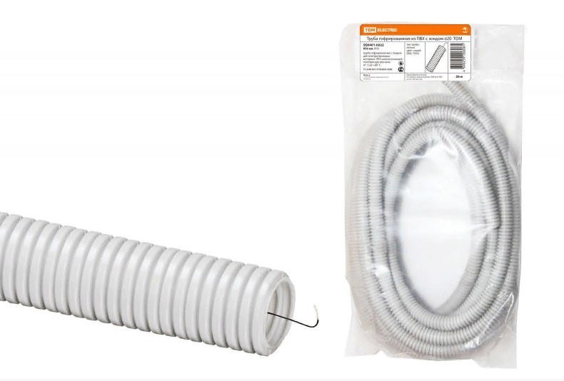 Труба гофрированная TDM ELECTRIC SQ0401-0022, ПВХ d 20 с зондом (20 м) легкая TDM