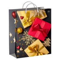 Пакет НГ СОФТПЛАСТ с пласт. ручкой 30*40см, 140мкм, мягк.пластик, Подарки на сером Тико