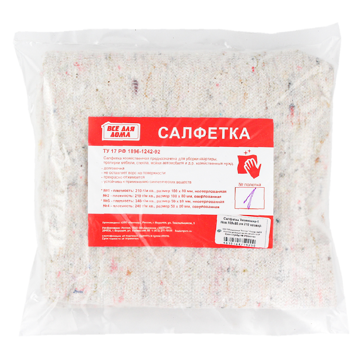 Купить Салфетка Хозяюшка-1 Нов.100x80 пл 210 неовер., а также приобрести другие хозяйственные товары для дома или дачи в нашем интернет-магазине vdd36.ru по низким ценам и вы сможете с удобной доставкой или бесплатным самовывозом из любого розничного магазина «Всё для дома» в Воронеже, Новой Усмани, Семилуках