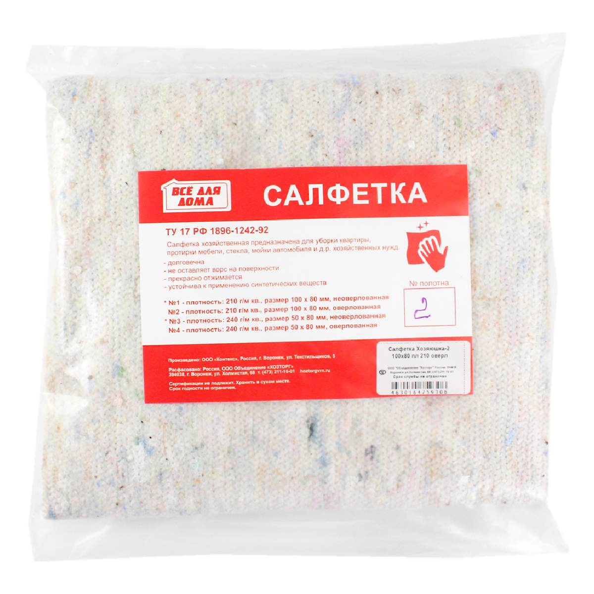 Купить Салфетка Хозяюшка-2 100x80 пл 210 оверл, а также приобрести другие хозяйственные товары для дома или дачи в нашем интернет-магазине vdd36.ru по низким ценам и вы сможете с удобной доставкой или бесплатным самовывозом из любого розничного магазина «Всё для дома» в Воронеже, Новой Усмани, Семилуках