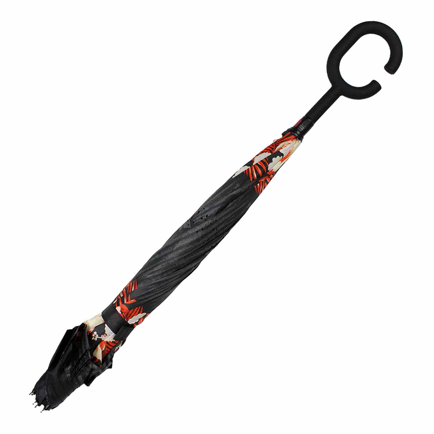 -Зонт-трость HTDMYR49 цветы на черном п/автомат D=120см полипропилен п/э