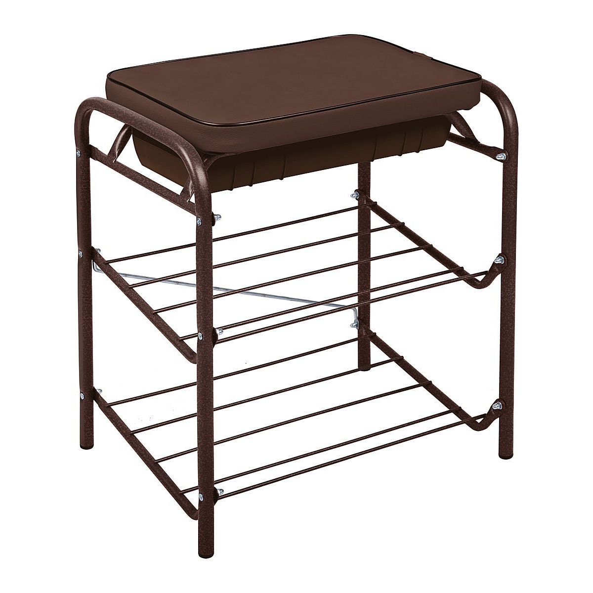 Банкетка для обуви Nika НБ2/BR, 2 полки, сиденье -винилискожа мелкая шагрень, поролон, 440х330х516мм, до 100кг, коричневый