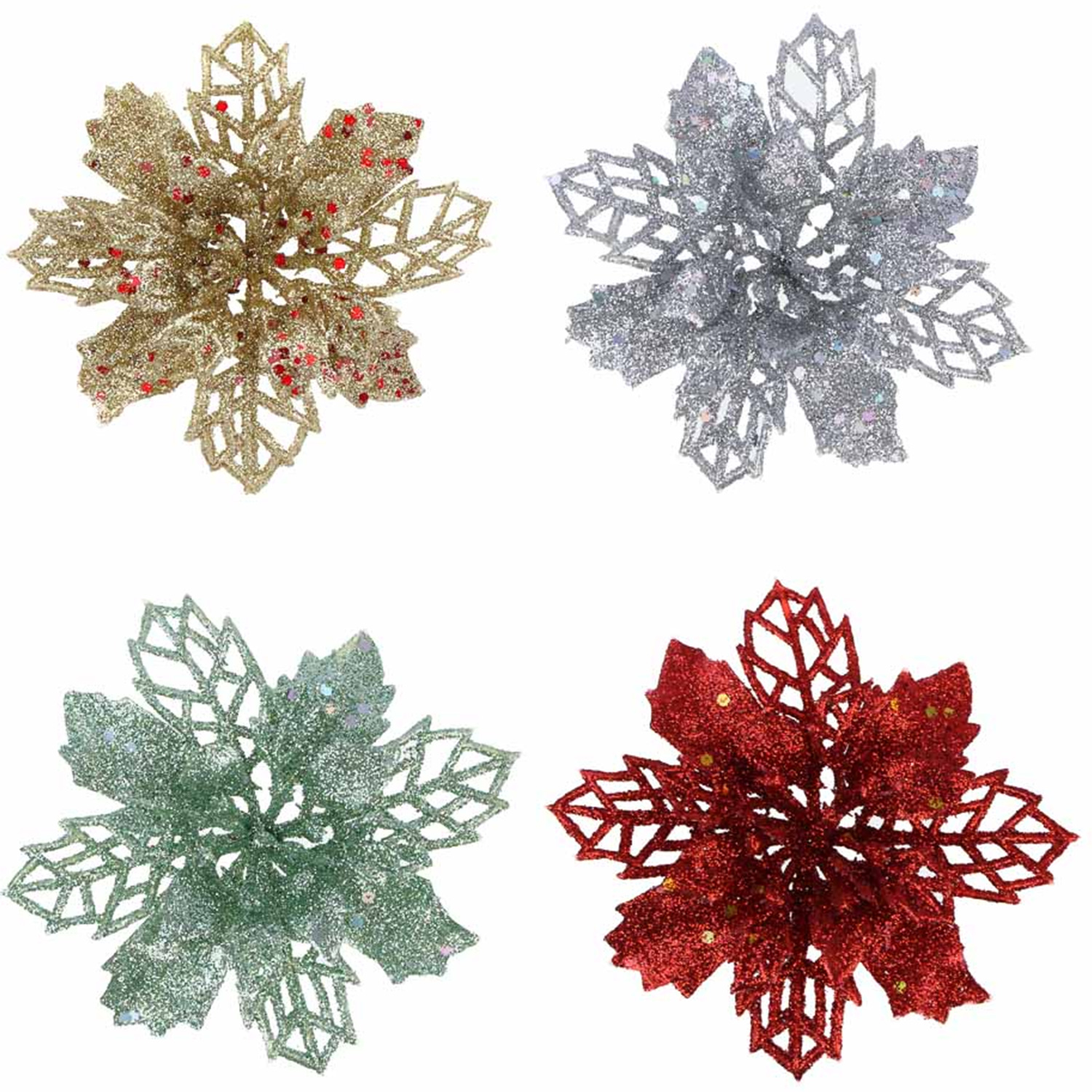 Набор елочных украшений, 4 шт, Пуансеттии, 9 см СНОУ БУМ (1/6) 374-018 (254981)