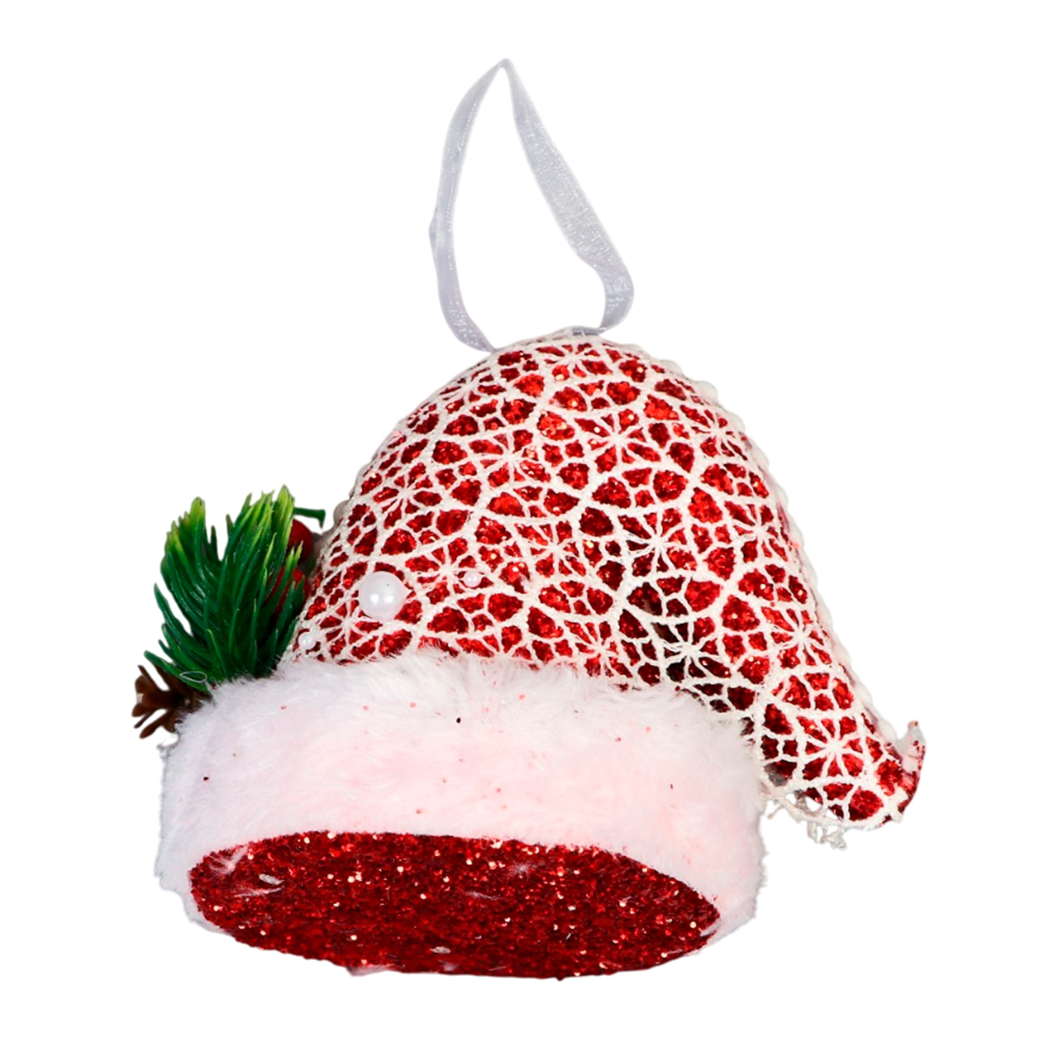 Нов.игр.9692888 Елочн. украш.Колпак элит 10см бело-красный