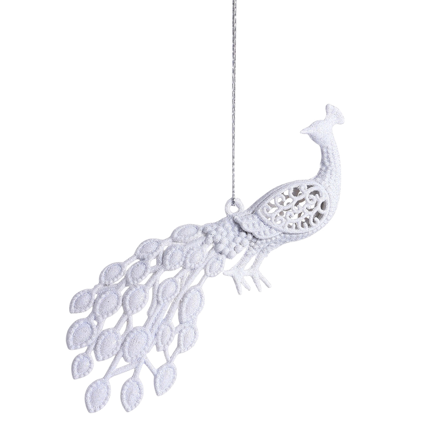 Нов.игр.4322947 Елочн. украш.Павлин (2шт) 5,5*16см белый