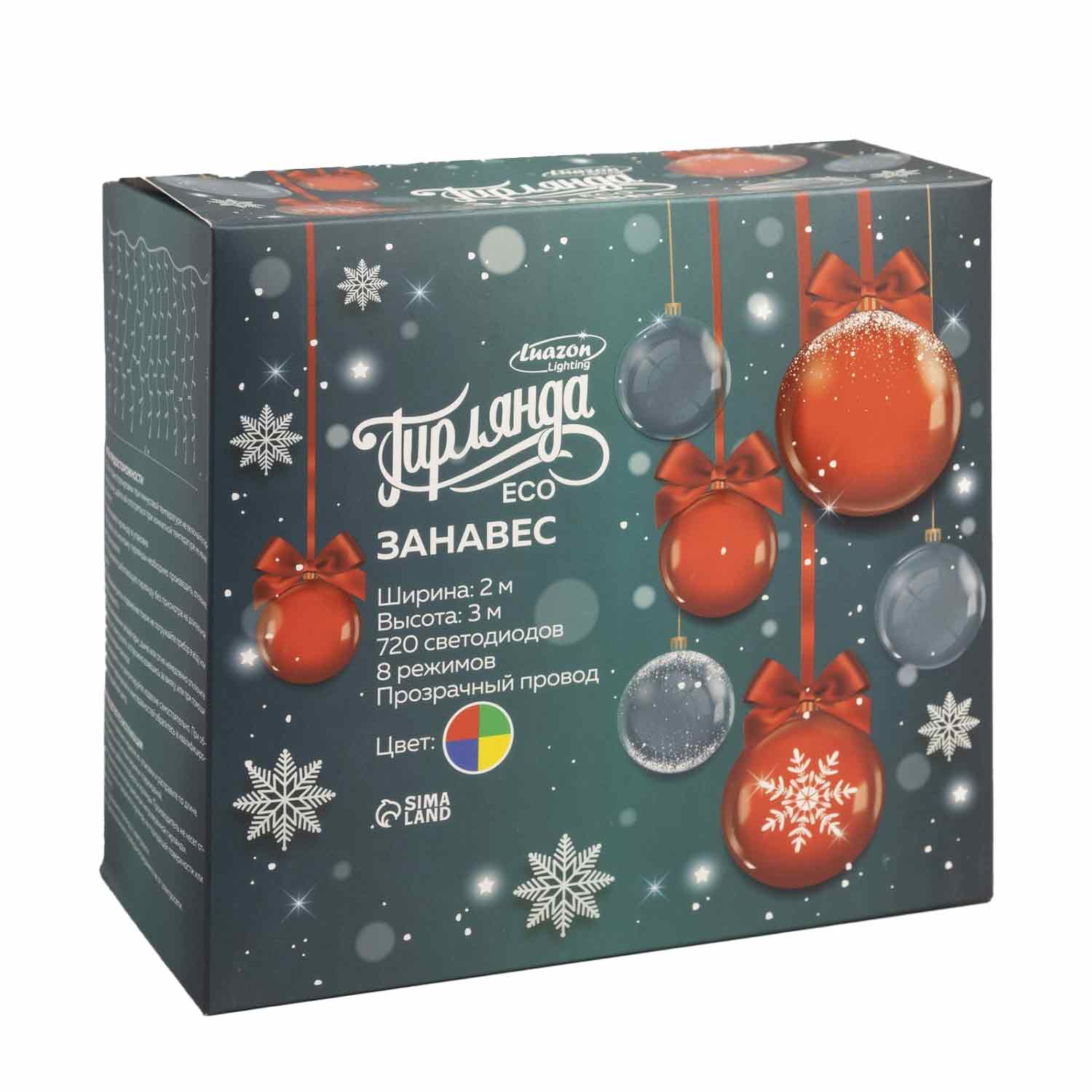ЗАНАВЕС ECO. IP20, УМС вилка, Ш:2 м, В:3 м, Н.С. LED-720-220V, 8 режимов, МУЛЬТИ 1080470