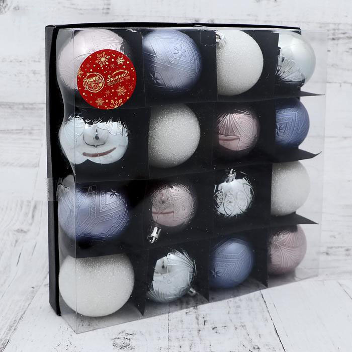 Новогоднее украшение  4942013, Наб.шаров Загадка 6см, 16шт, серебристо-белый