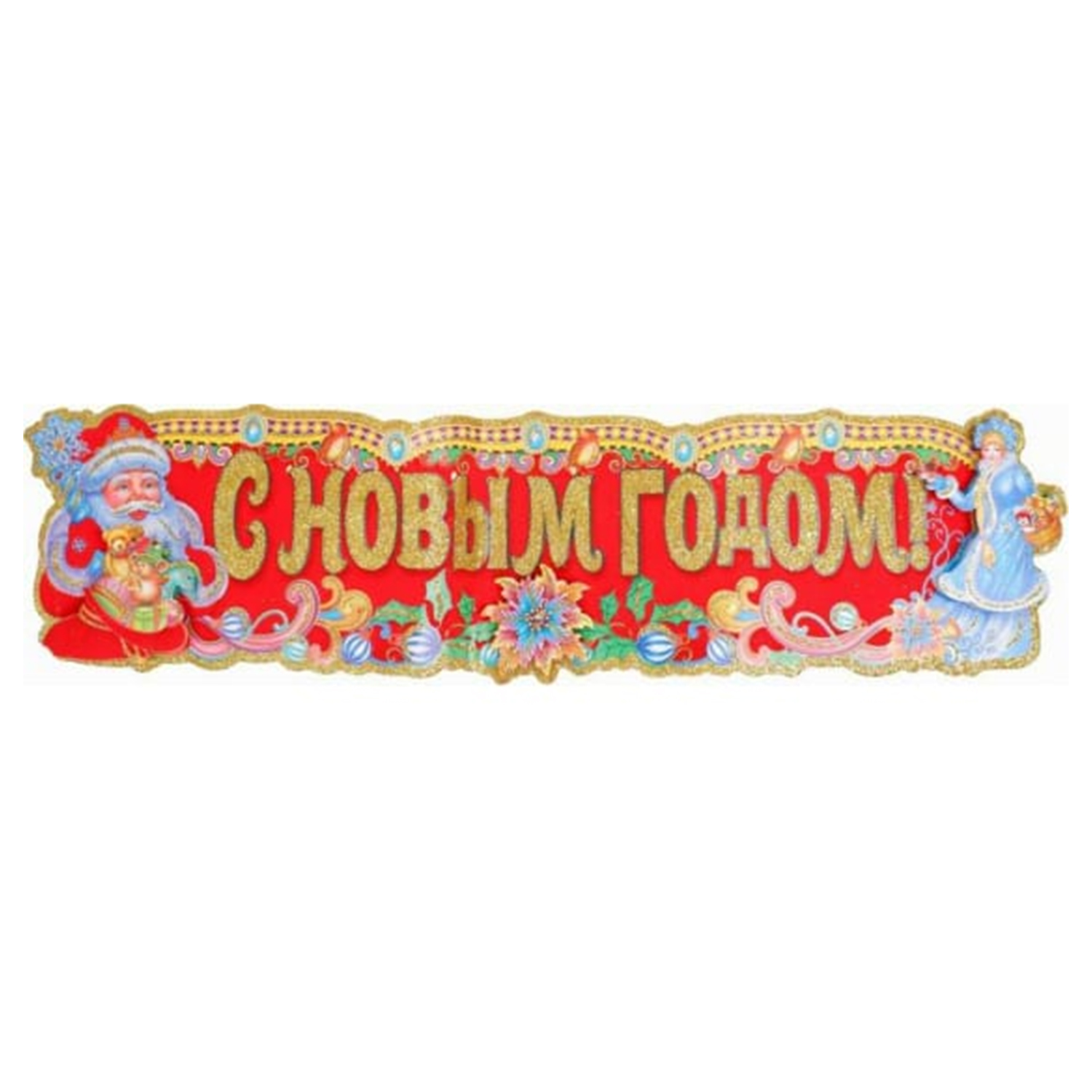 Плакат оформительский НУ-8256 на скотче Новогодняя упряжка, 45см глиттер