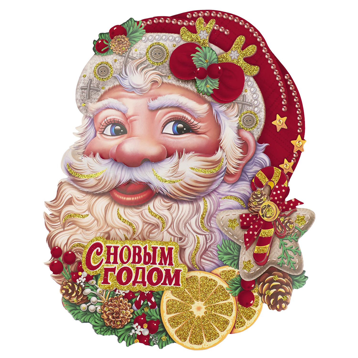 Плакат оформительский НУ-8233 на скотче Дедушка Мороз, 35см глиттер