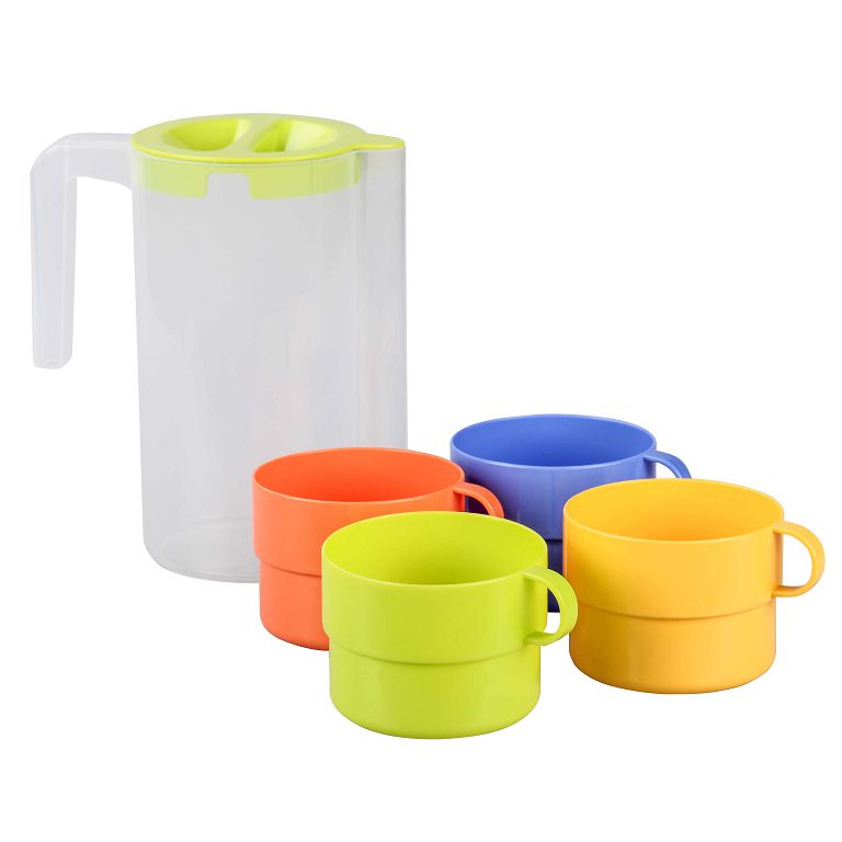 Набор для воды п/м БАШ "Турист" М6523, кувшин с крышкой 1,2л., 4 кружки 0,3л., в ассортименте