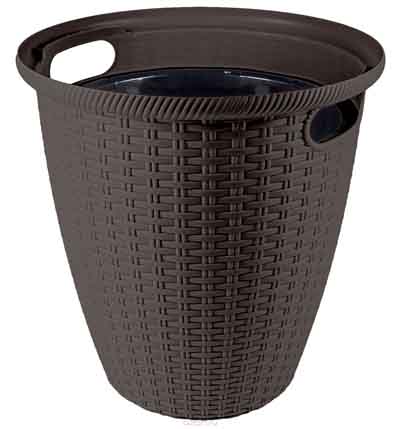 Кашпо п/м "Ротанг" ING50020, 20 л., D 330 мм., с ручками, технический горшок 11 л., Горький шоколад