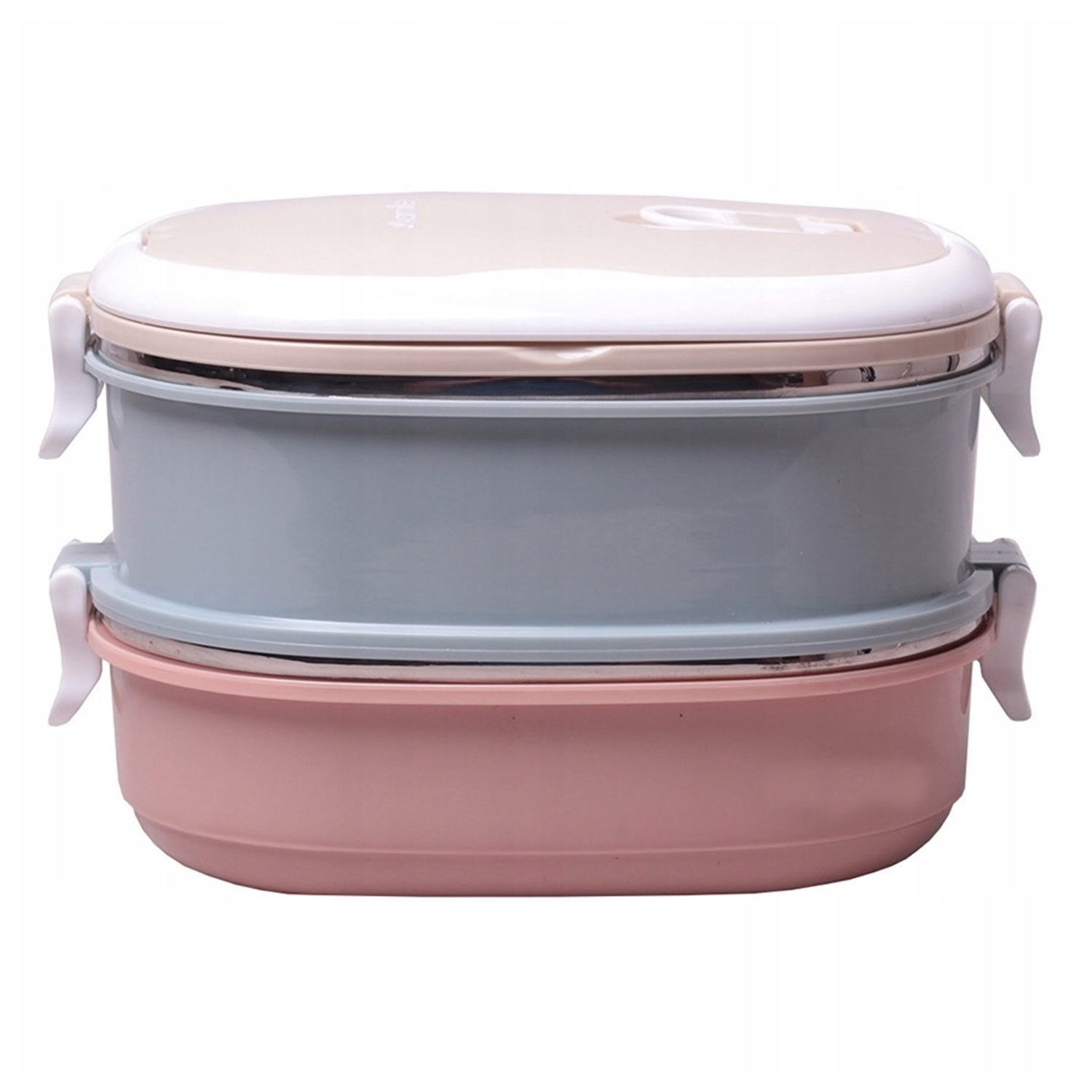 Ланч-бокс двойной 2125 1400мл, пласт.корп/внутри нерж.сталь, розовый с бежевым и серым