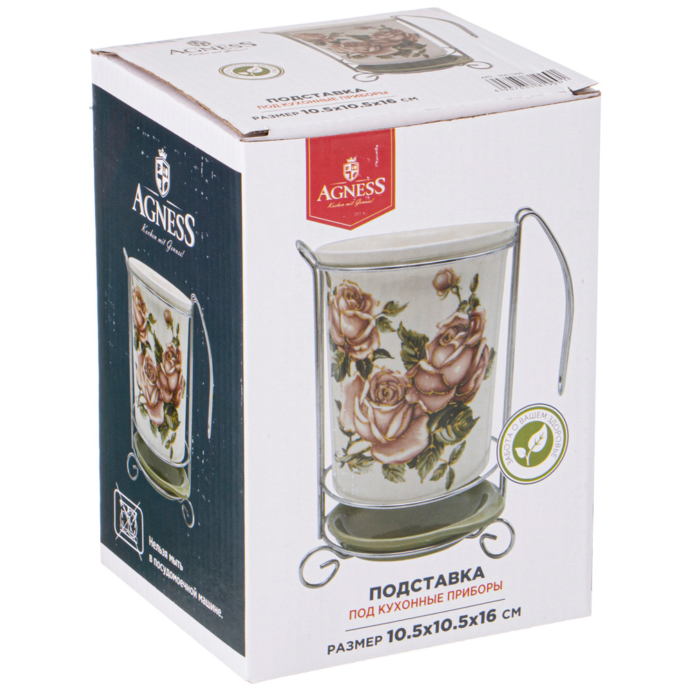 Подставка для столовых приборов керам. Agness "Корейская роза"  358-1990, 10,5*10,5*16см