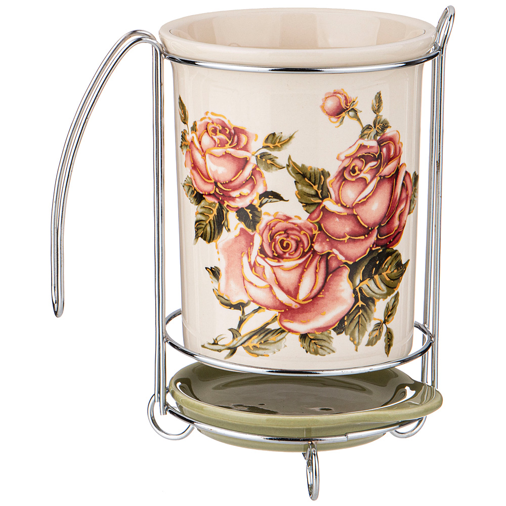 -Подставка для кухонных приборов 358-1990 Корейская роза 10,5*10,5*16см