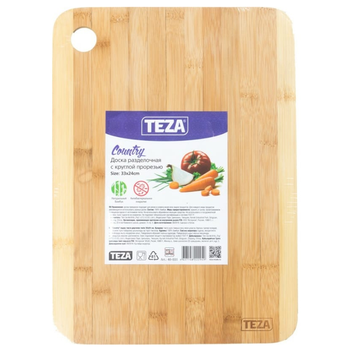 Доска разд Country 33*24*1см с круглой прорезью бамбук 40-031