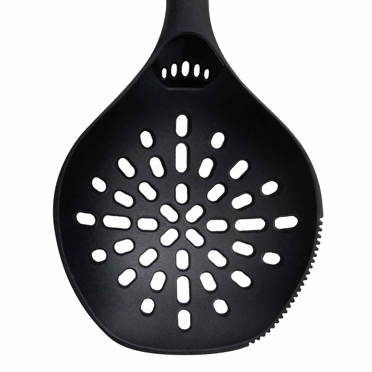 Шумовка TalleR TR-51423 из серии Accessories — практичный кухонный инструмент длиной 26,5 см, выполненный из безопасного термостойкого пластика. Материал выдерживает температуру до 180°C, что делает шумовку удобной для аккуратного удаления пены, вынимания продуктов из кипящих жидкостей и процеживания.Ручка оснащена отверстием для подвешивания, что позволяет удобно хранить прибор на кухне. Черно-красный дизайн делает шумовку стильным и ярким аксессуаром. Изделие легко моется в посудомоечной машине, но для сохранения внешнего вида не рекомендуется использовать абразивные средства и металлические мочалки, а также оставлять шумовку на раскаленных поверхностях.