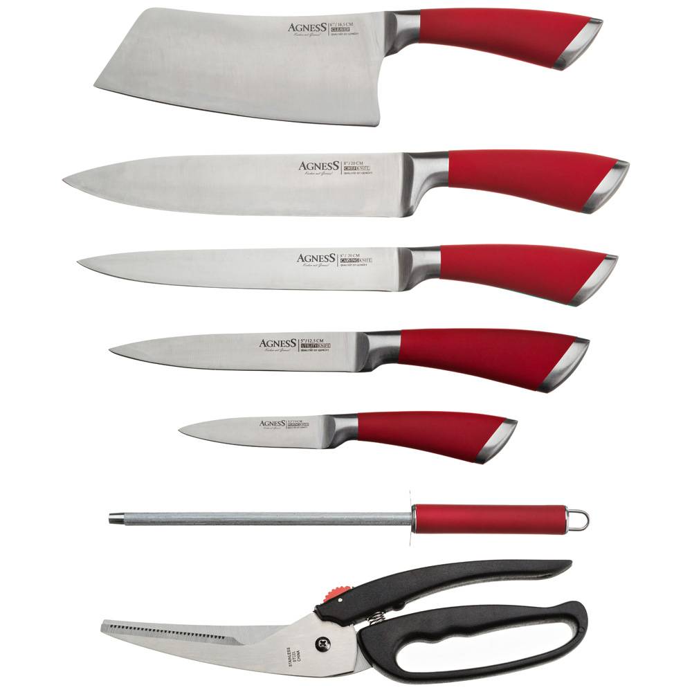 Набор ножей нерж. Agness 911-501, 8  предметов, вращающаяся пластиковая подставка
