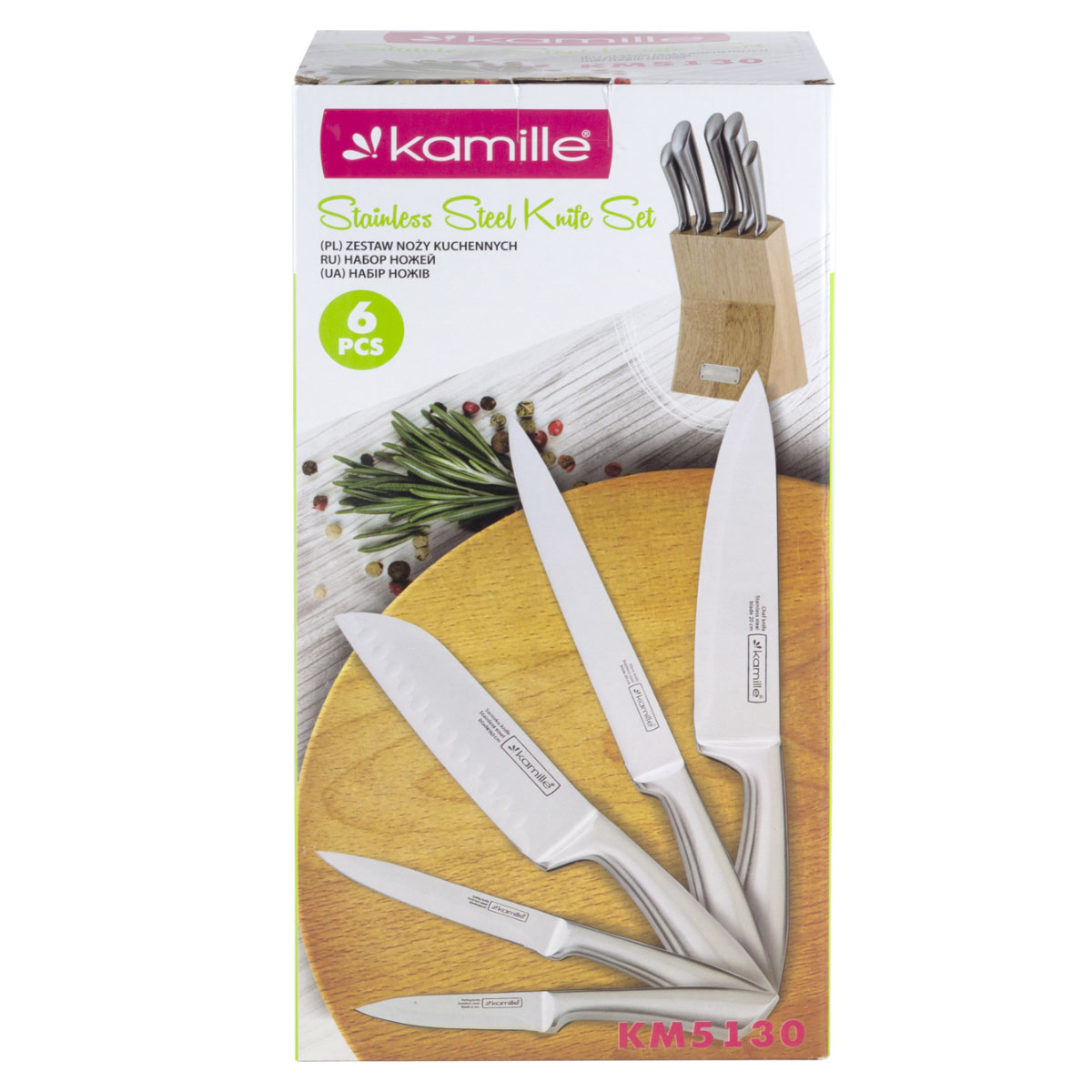 Набор ножей нерж. Kamille 5130,   6пр., с полыми ручками и дер.подставкой