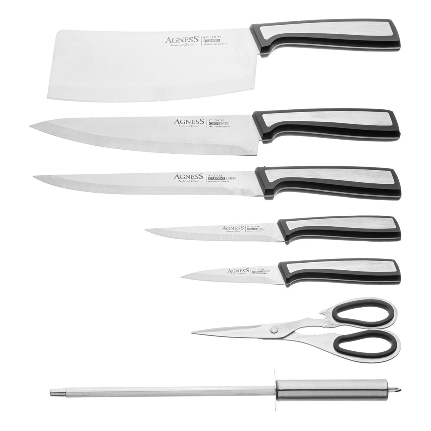 Наб.ножей 911-769 Agness с ножницами и мусатом на пластик.подставке 8пр