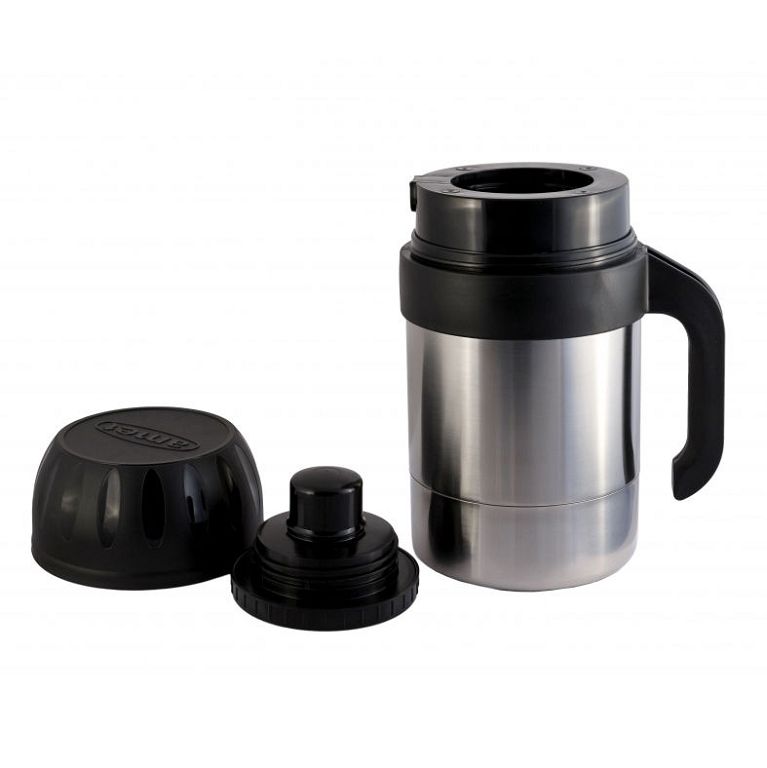 Корпус из прочной нержавеющей стали AISI 304 надёжен и устойчив к повреждениям, не впитывает запахи и легко очищается. Термос сохраняет тепло до 24 часов, благодаря герметичной крышке-чашке и хорошо продуманной конструкции. Удобная пластиковая ручка помогает надёжно удерживать термос в руке.