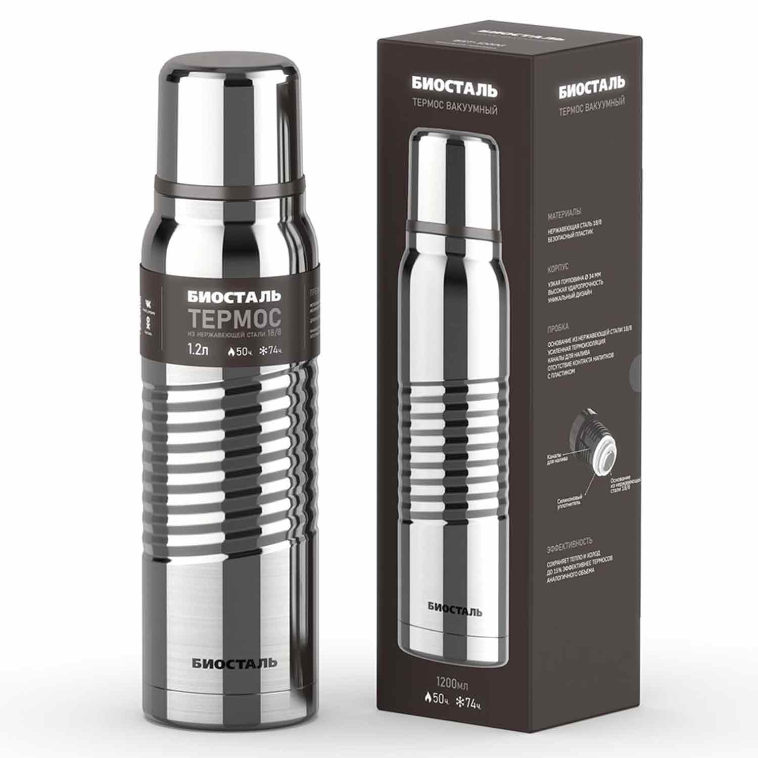 -Термос BIOSTAL-Экстрим BST-1200G 1,25л у/г 2 чашки глянцевый 12