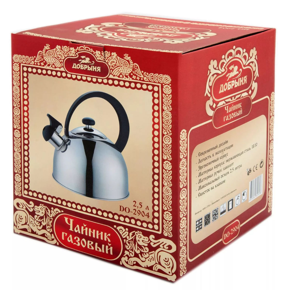 Чайник нерж. ДОБРЫНЯ DO-2904, с/с 2,5л, бакелитовая ручка