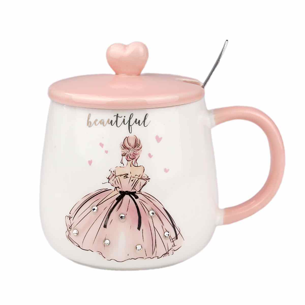 -Кружка 380мл подарочная керамика HTY6, с ложкой и крышкой