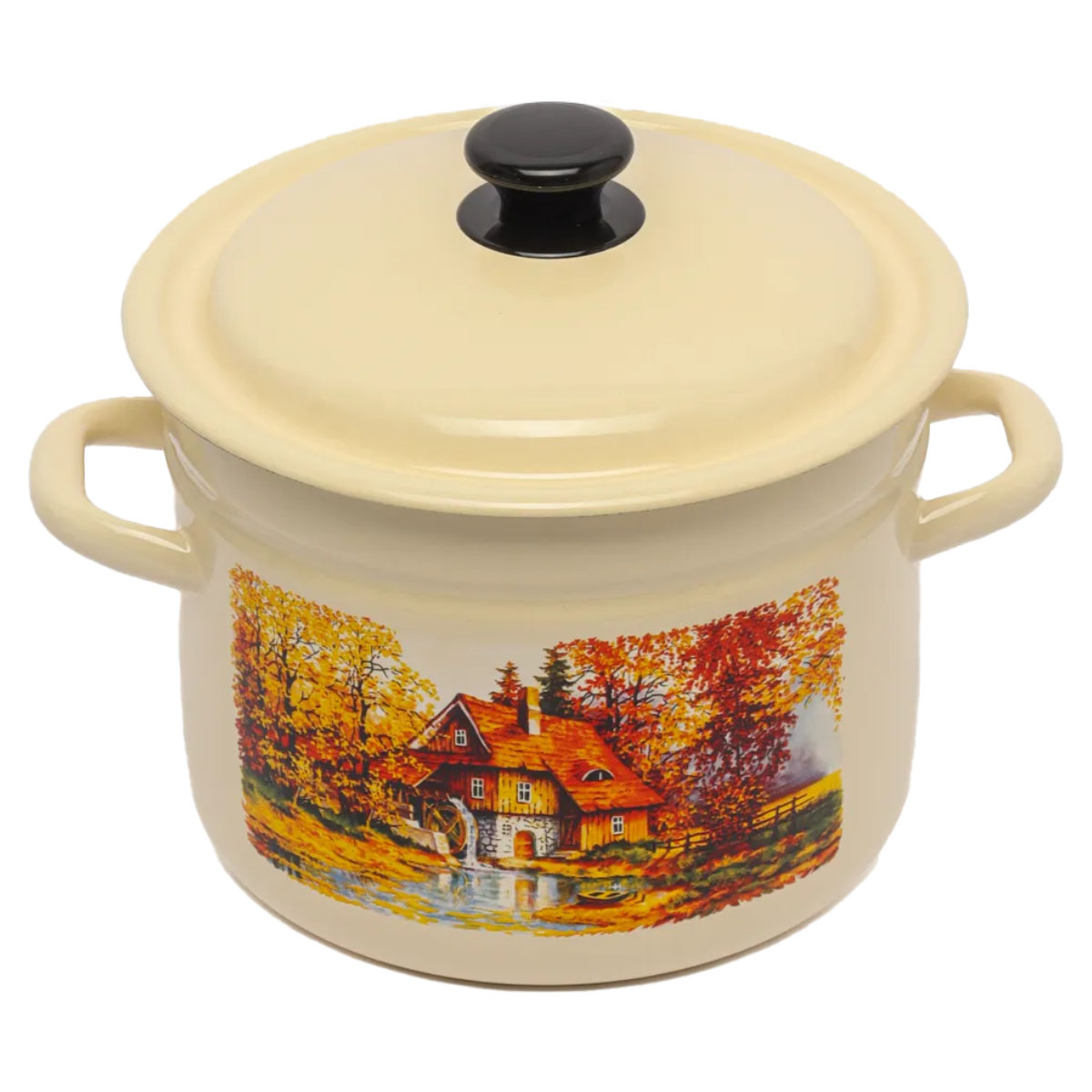 Кастрюля эмаль КМК 41804-212/6-У2, 9л, с эмаль крышкой, с декором, цилиндр., в ассорт.