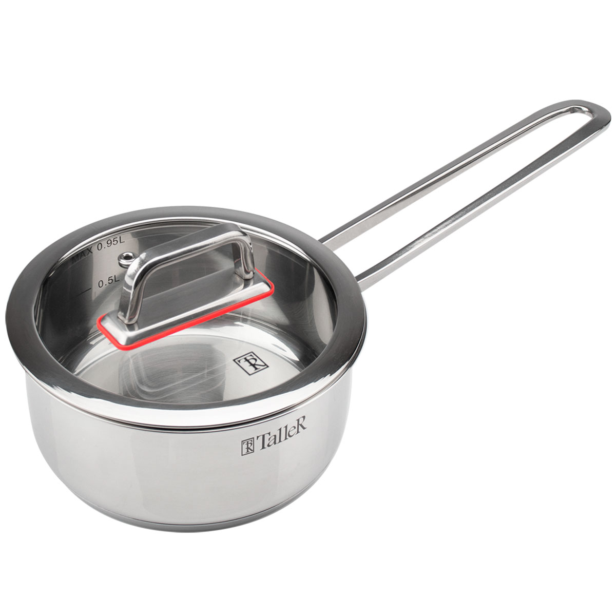 Ковш с крышкой TalleR TR-17271 "Тенденси» объёмом 0,9 л — компактная и функциональная модель из высококачественной нержавеющей стали 18/10 с зеркальной полировкой внутри и снаружи. Капсулированное дно толщиной 2,8 мм обеспечивает равномерное и быстрое распределение тепла, а стенки толщиной 0,6 мм гарантируют надёжность и долговечность.Плоская крышка из жаропрочного стекла с металлическим ободом и отверстием для выхода пара позволяет контролировать процесс приготовления и предотвращает избыточное образование конденсата. Ручка, закреплённая точечной сваркой, обеспечивает прочное и удобное удержание. Внутри ковша есть отметки литража для точного измерения.
