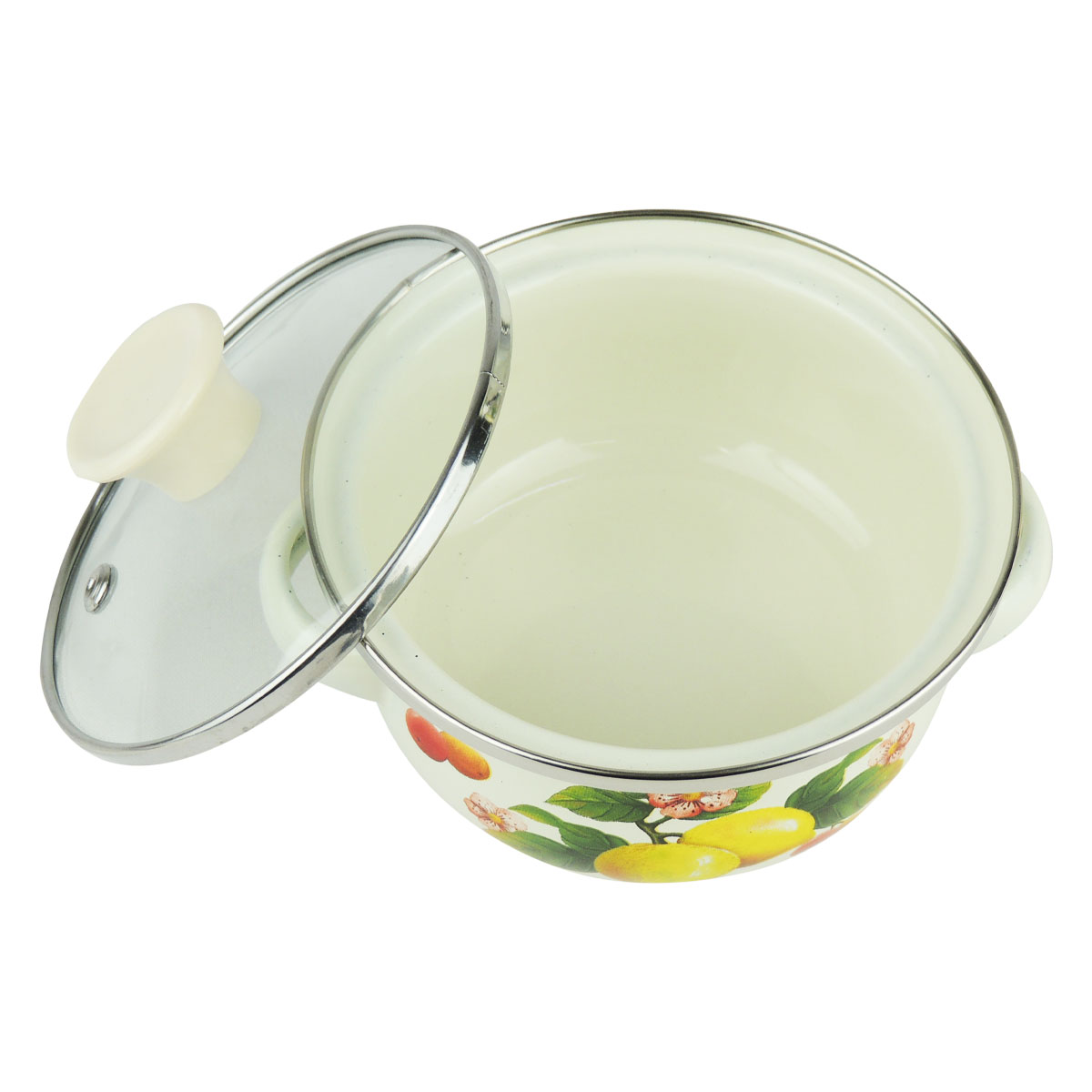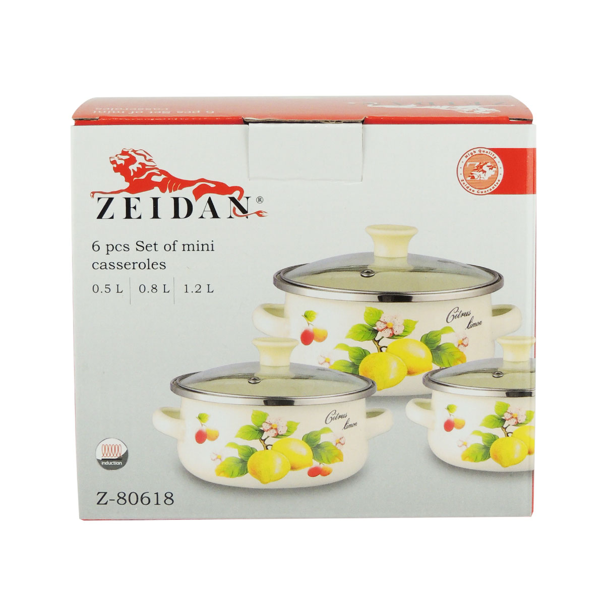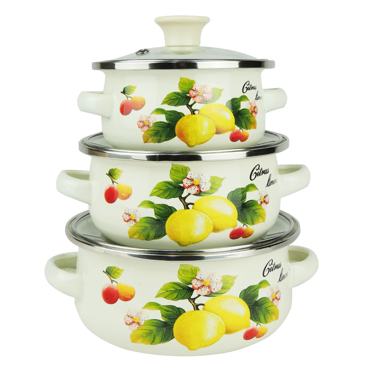Набор мини-кастрюль ZEIDAN Z-80618, эмалированная сталь, стекло (0.5;0.8;1.2л), можно мыть в ПММ, лимоны