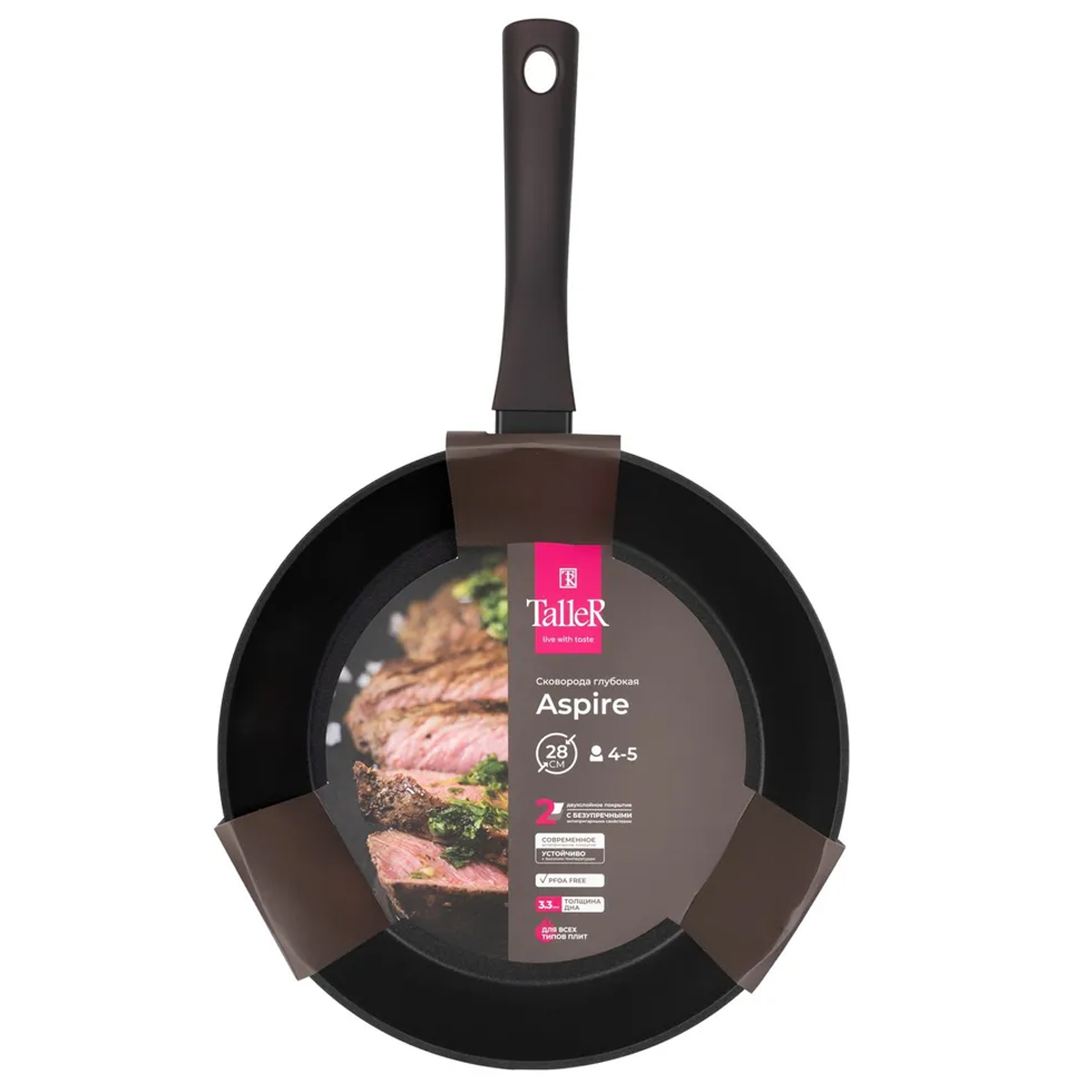 Глубокая сковорода TalleR TR-44102 серии Аспайр диаметром 28 см — это сочетание стиля, функциональности и надёжности для современной кухни. Изготовленная из кованого алюминия, она быстро нагревается и долго удерживает тепло, что особенно важно при готовке в большом объёме.