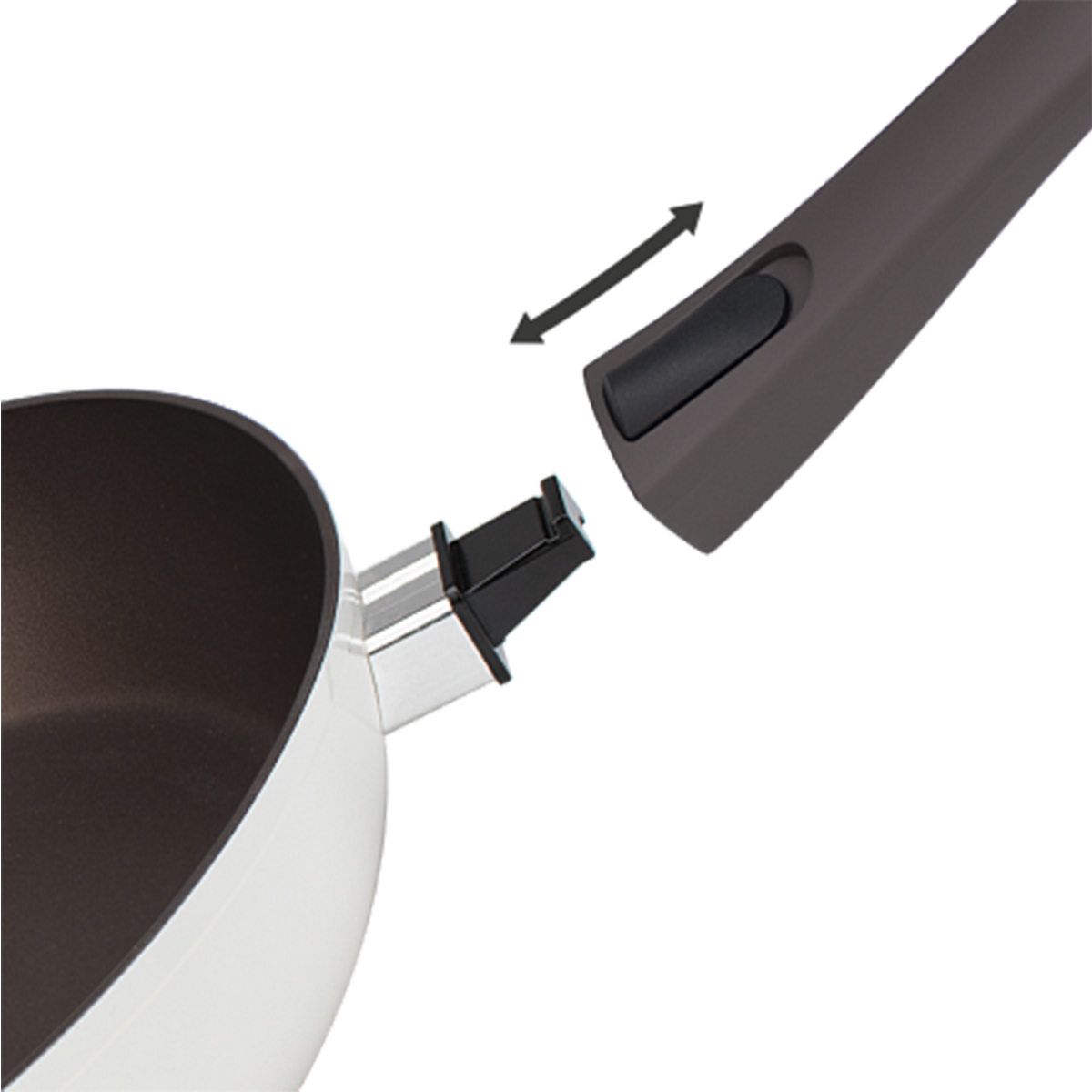 Утолщённое дно 3,8 мм надёжно удерживает тепло, ускоряя приготовление. Съёмная бакелитовая ручка с soft-touch покрытием не нагревается и делает сковороду пригодной для использования в духовке. Поверхность легко очищается, а нейтральные молочно-коричневые оттенки впишутся в любую кухню. Подходит для всех типов плит, включая индукционные.