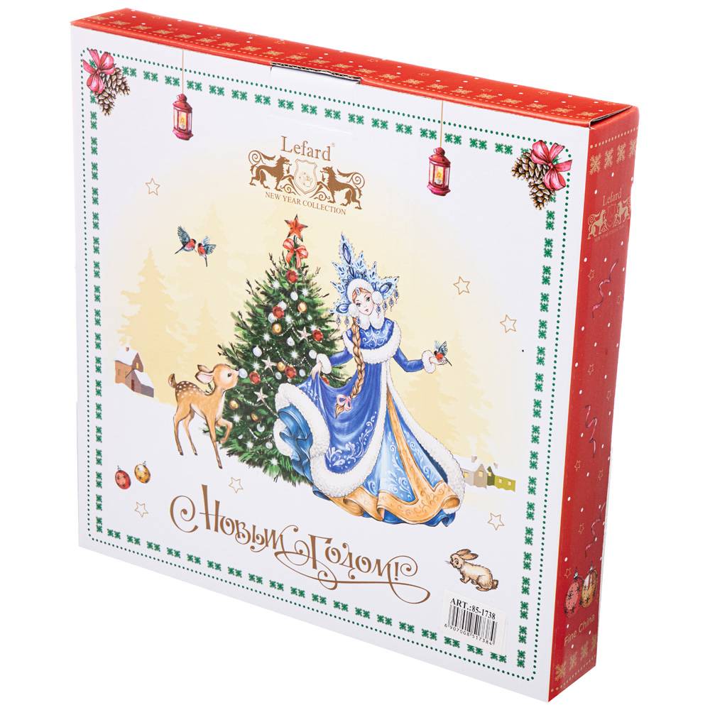 Блюдо фарфор Lefard "Дед мороз и снегурочка" 85-1738, 26см,  красное