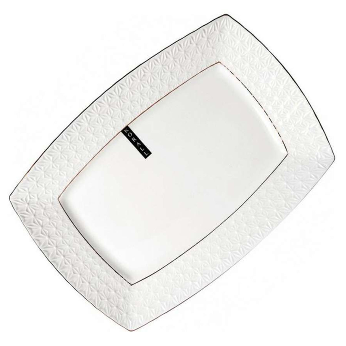Блюдо фарфор Коралл "Снежная королева" CS222728-А, прямоугольное 280 мм, золотая кайма, белый