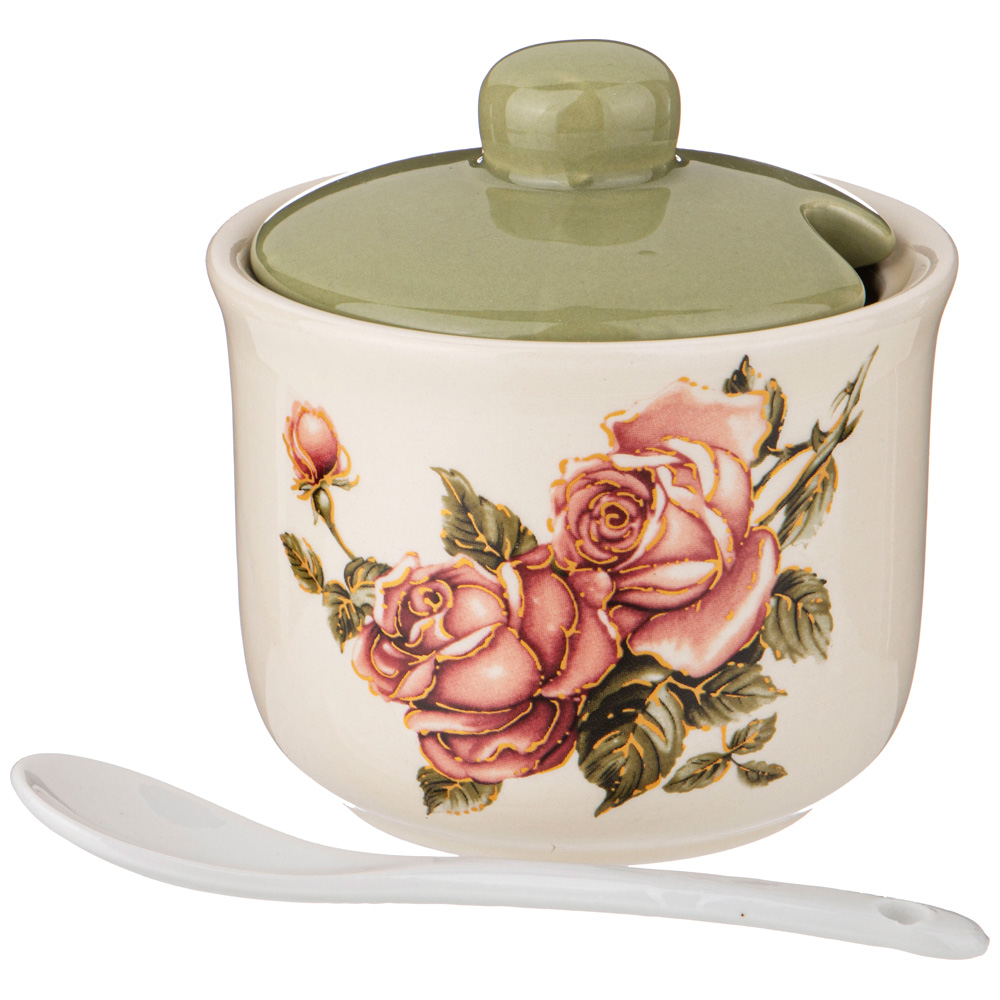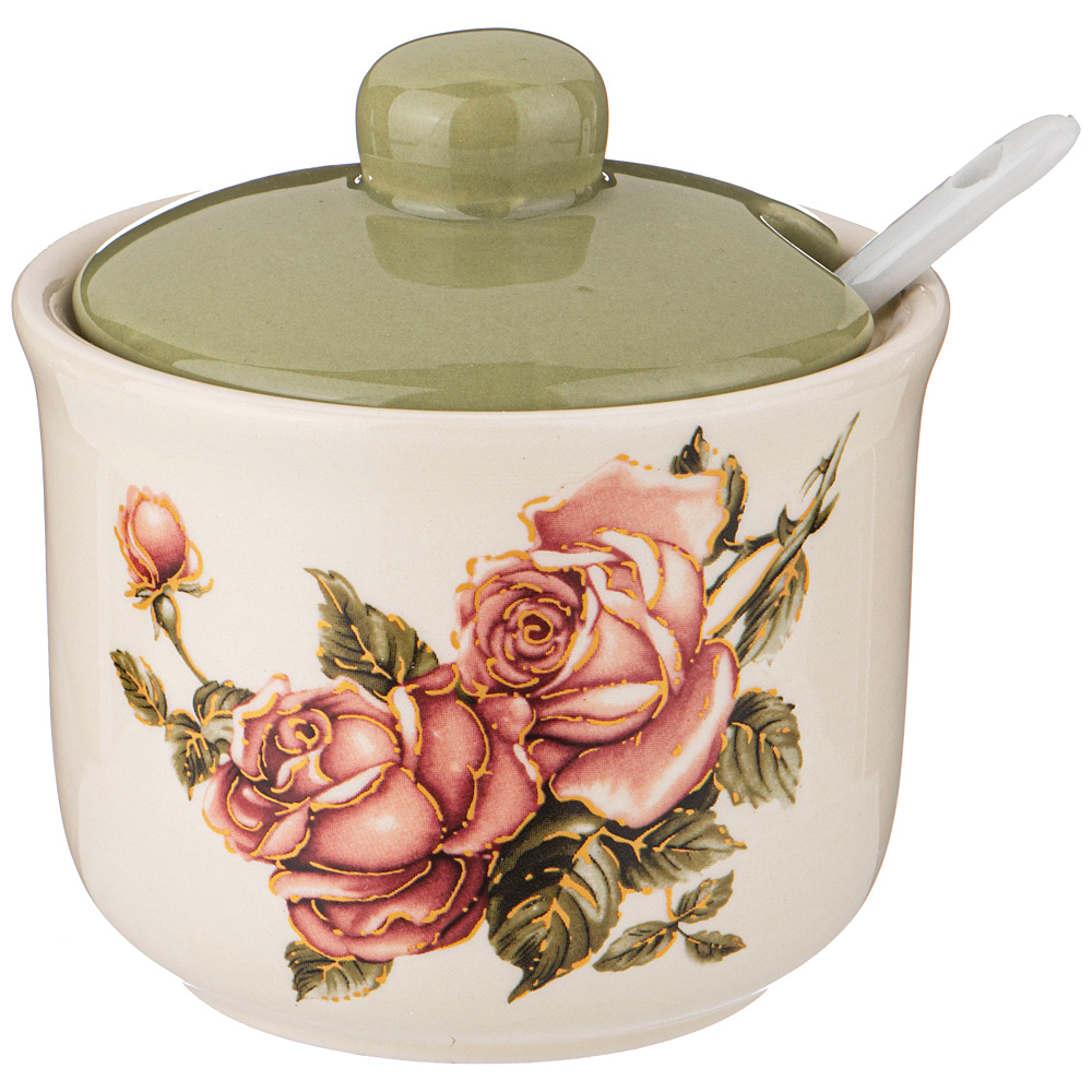 Сахарница 358-1997 Корейская роза с ложкой 300мл, 10*10*9,5см