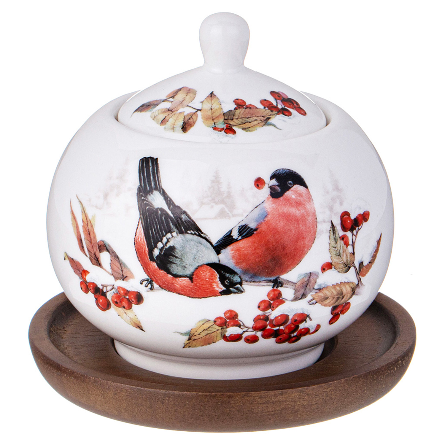 Сахарница 85-2024 Lefard "Лесная сказка" снегири 380мл на дерев. подст.