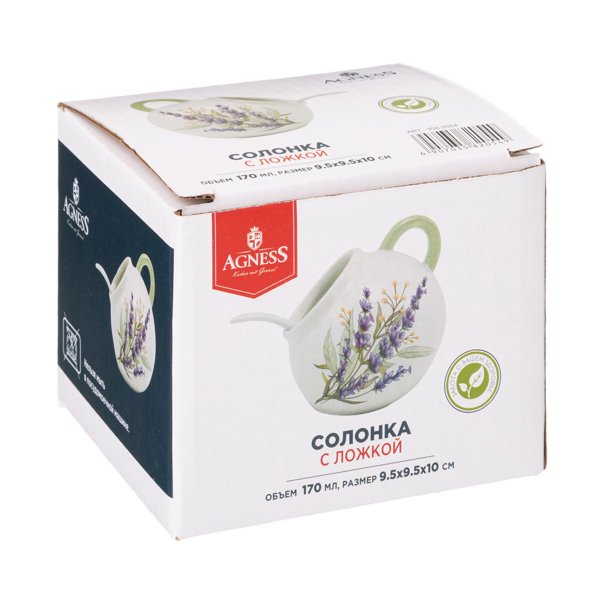 Солонка фарф. Agness "Душа Прованса" 358-2054, НЕ использовать в СВЧ печах и ПММ, 170мл