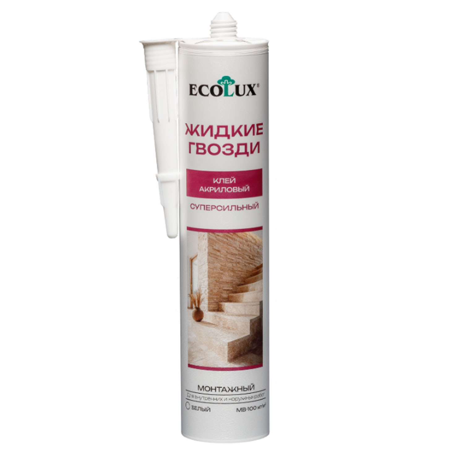Клей ремонтно-монтажный акриловый 200мл белый Ecolux (12)