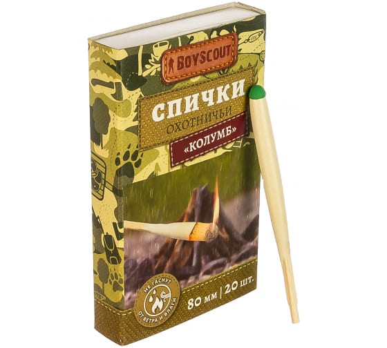 Спички Колумб 80мм, 20шт 61033 BOYSCOUT и еще большой ассортимент других товаров для туризма и отдыха на природе, товаров для дачи можно купить по выгодным ценам в онлайн-магазине vdd36.ru с возможностью бесплатного самовывоза в любом розничном магазине сети «Всё для дома».