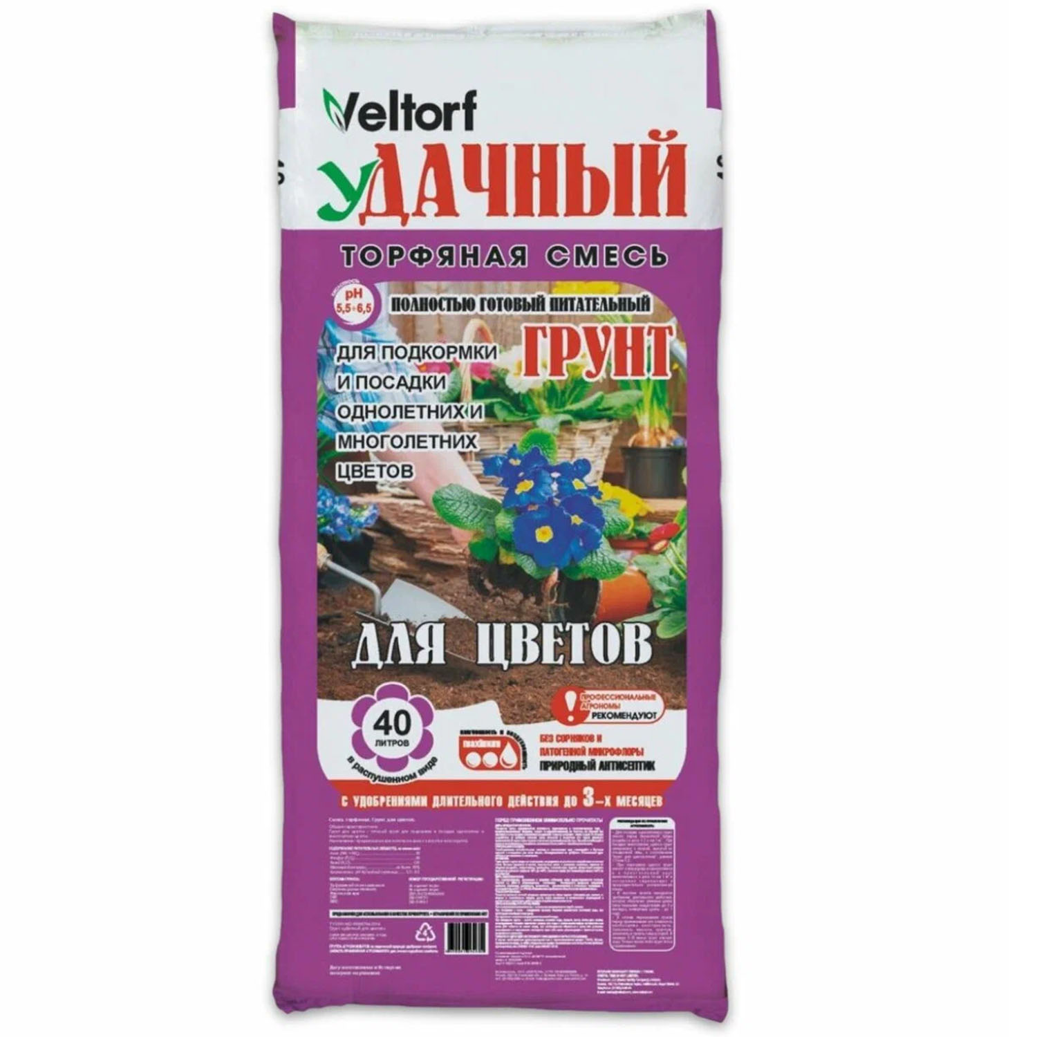 -Грунт "Для цветов" 40л Удачный "Велторф"