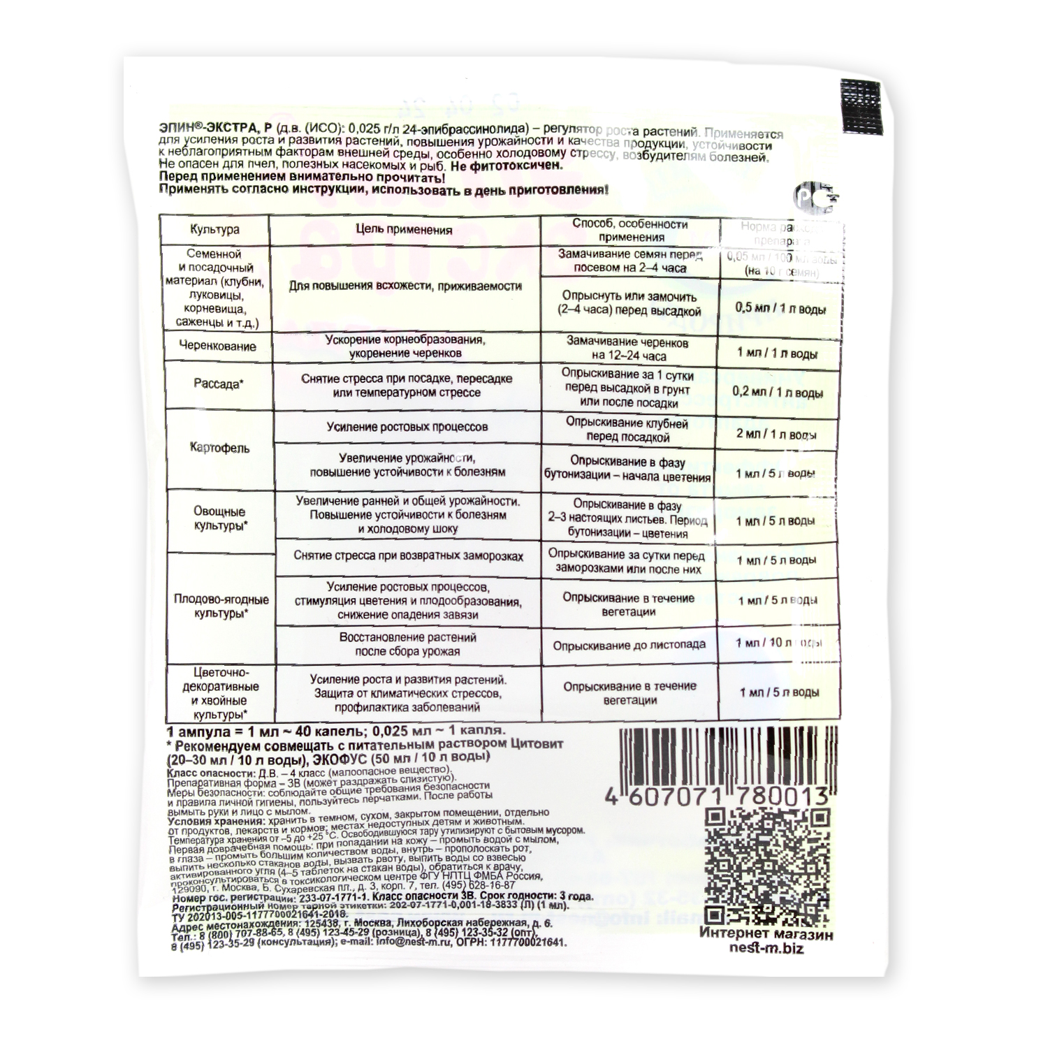 -Средство "Эпин-экстра" (регулятор роста и развития растений) 1мл (500шт)
